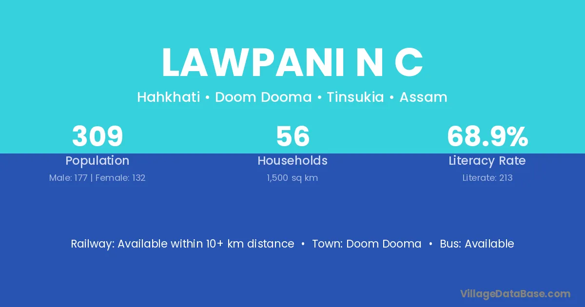 Lawpani N C village has a total population of 309 people, of which 177 are males and 132 are females.