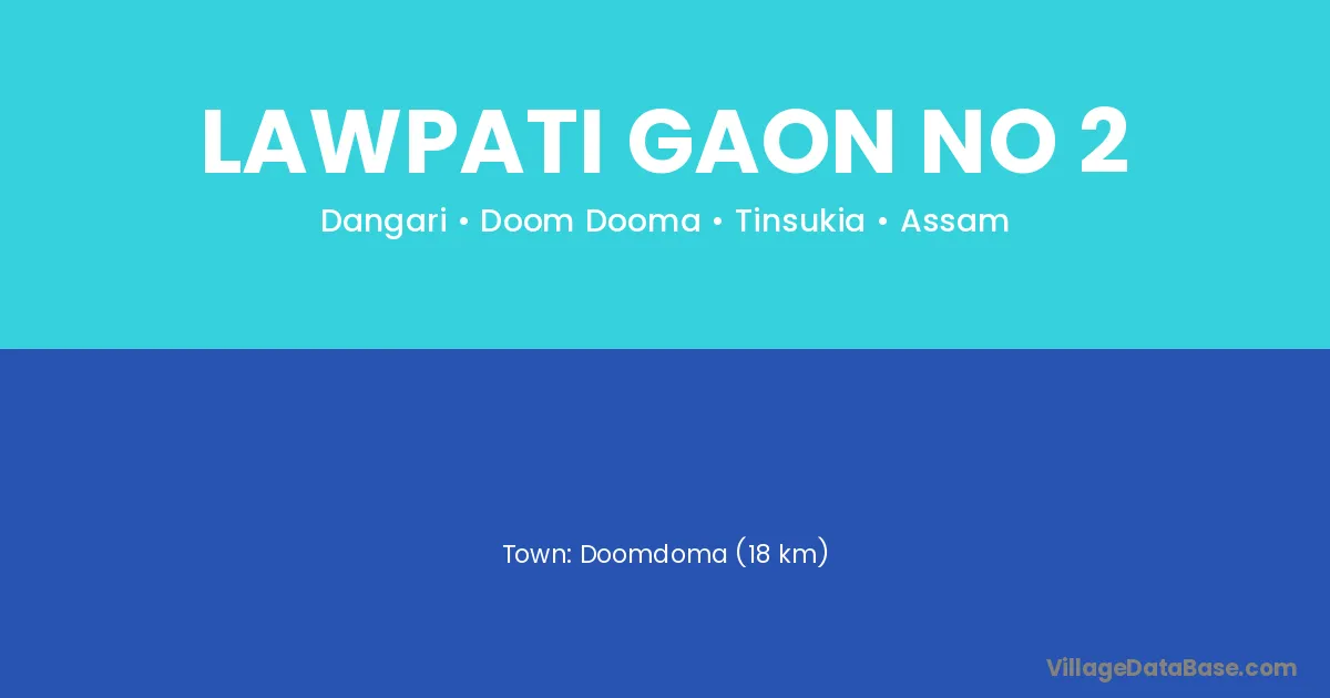Doomdoma (18 km) is the nearest town to Lawpati Gaon No 2 village for major economic activities and is located approximately 18 km away.