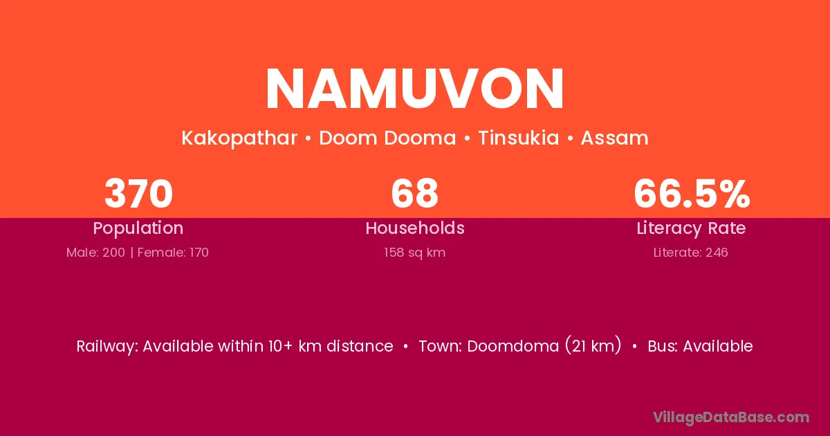Namuvon village has a total population of 370 people, of which 200 are males and 170 are females.