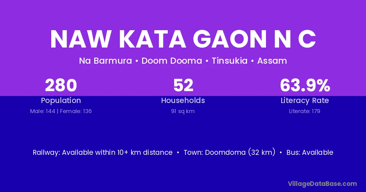 Doomdoma (32 km) is the nearest town to Naw Kata Gaon N C village for major economic activities and is located approximately 32 km away.