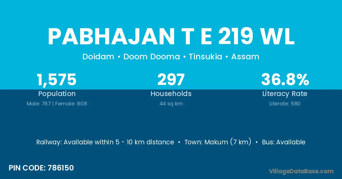 Makum (7 km) is the nearest town to Pabhajan T E 219 Wl village for major economic activities and is located approximately 7 km away.