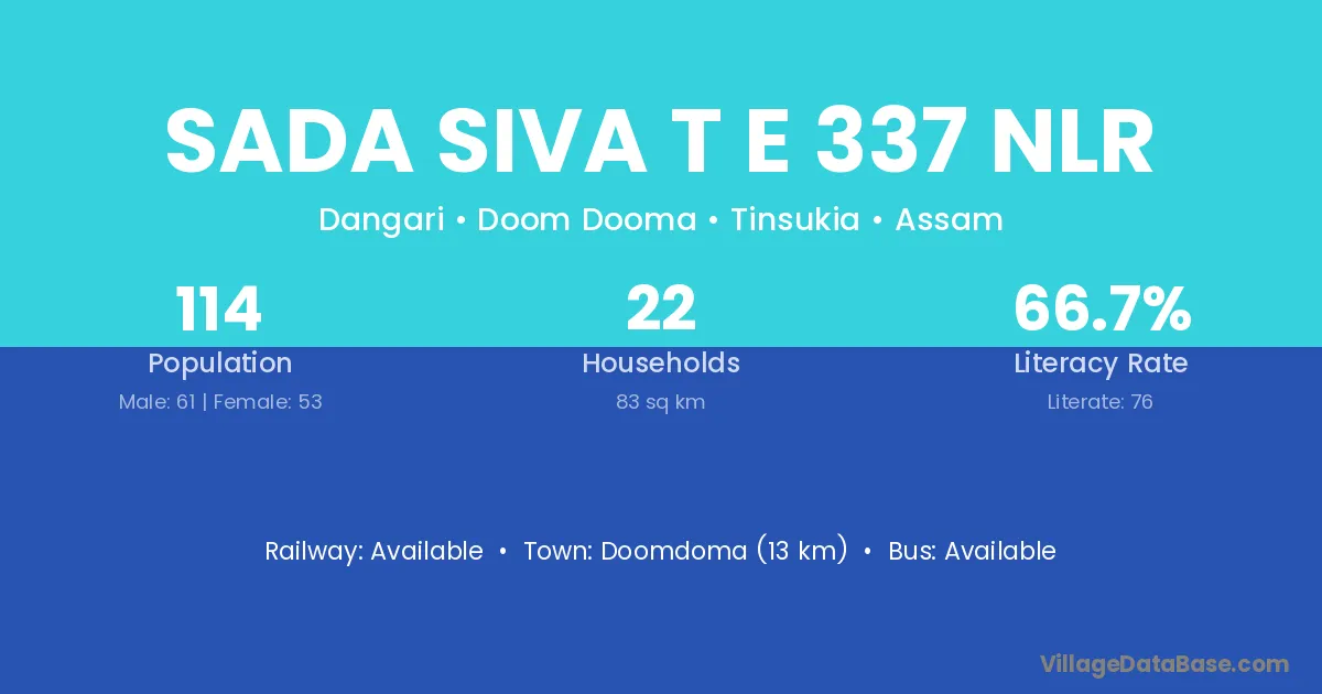 Sada Siva T E 337 Nlr village is located in the Doom Dooma Subdivision of the Tinsukia district in Assam .