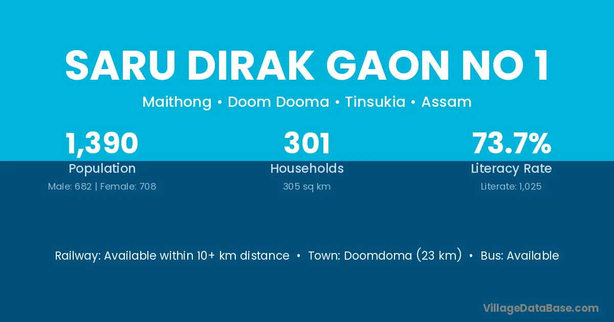 There are approximately 301 households in Saru Dirak Gaon No 1 village.