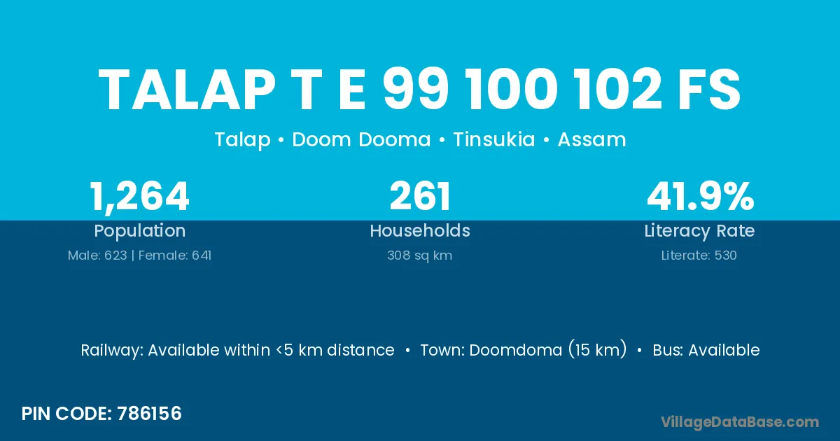 Talap T E 99 100 102 Fs village has a total population of 1,264 people, of which 623 are males and 641 are females.