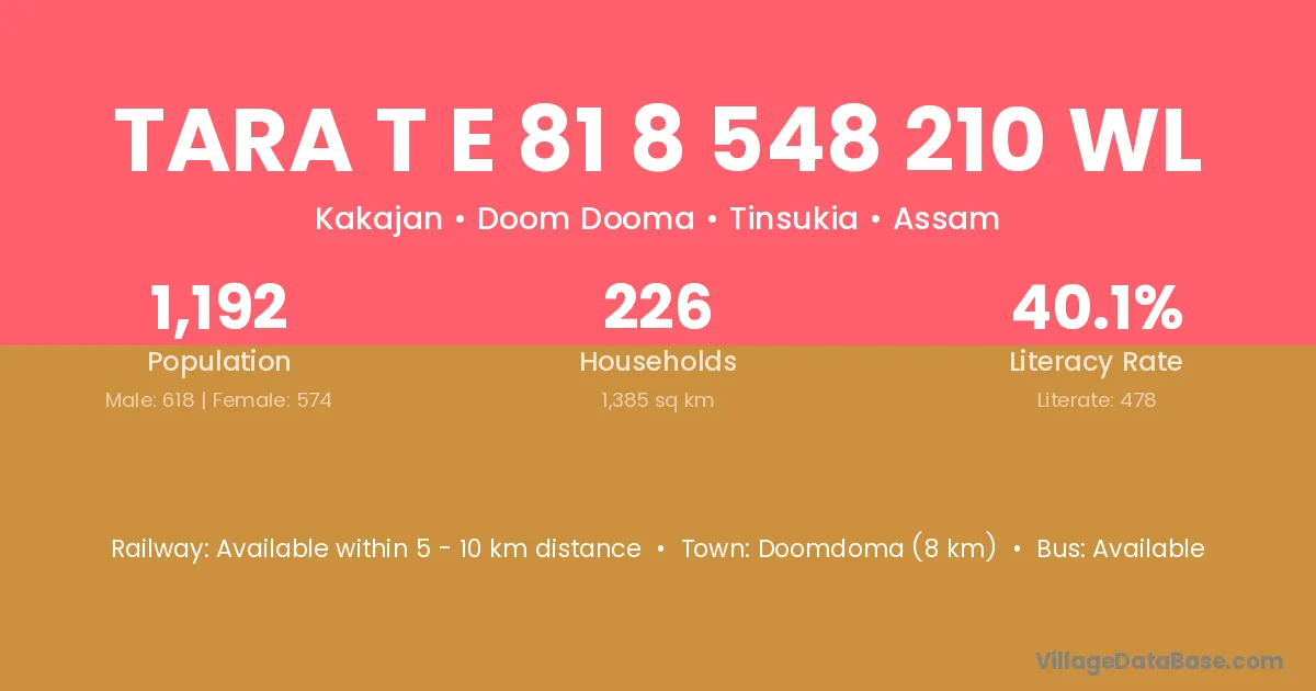 Tara T E 81 8 548 210 Wl village is located in the Doom Dooma Subdivision of the Tinsukia district in Assam .