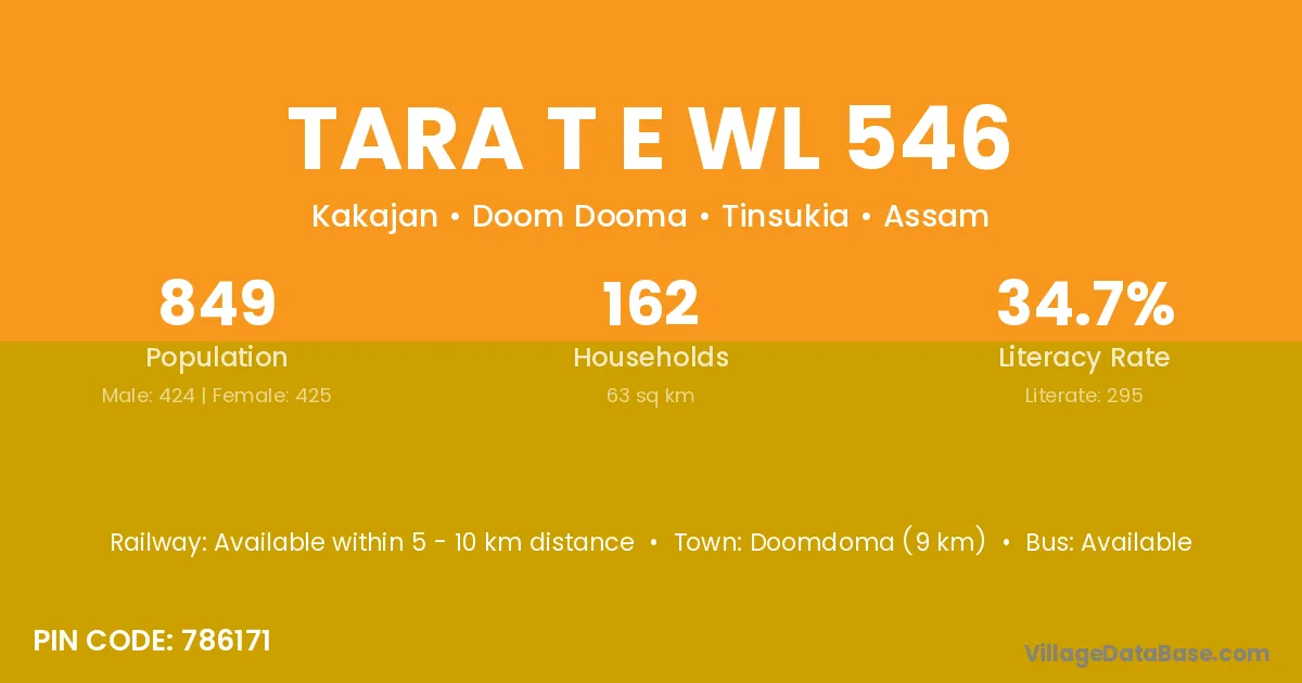 Tara T E Wl 546 village is located in the Doom Dooma Subdivision of the Tinsukia district in Assam .