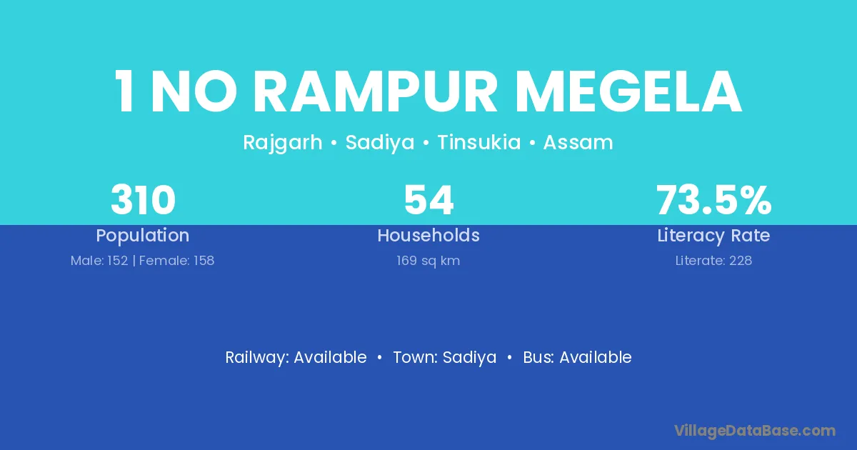 Sadiya is the nearest town to 1 No Rampur Megela village for major economic activities