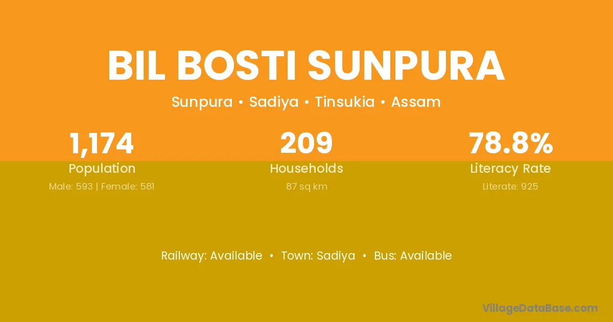 Sadiya is the nearest town to Bil Bosti Sunpura village for major economic activities