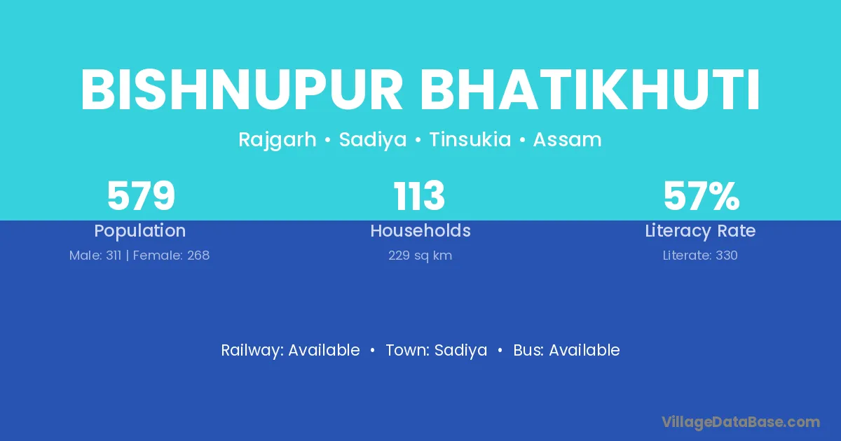Bishnupur Bhatikhuti village has a total population of 579 people, of which 311 are males and 268 are females.