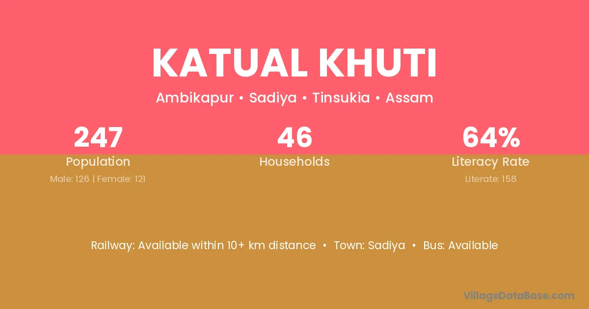 Katual Khuti village has a total population of 247 people, of which 126 are males and 121 are females.