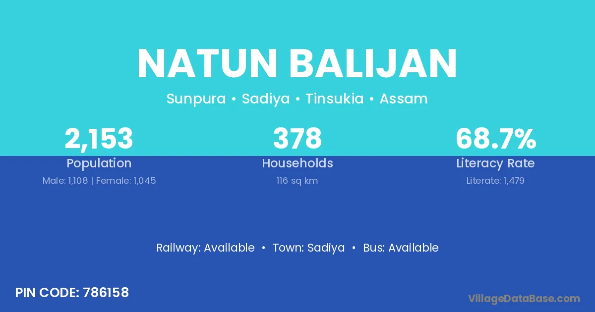 Sadiya is the nearest town to Natun Balijan village for major economic activities