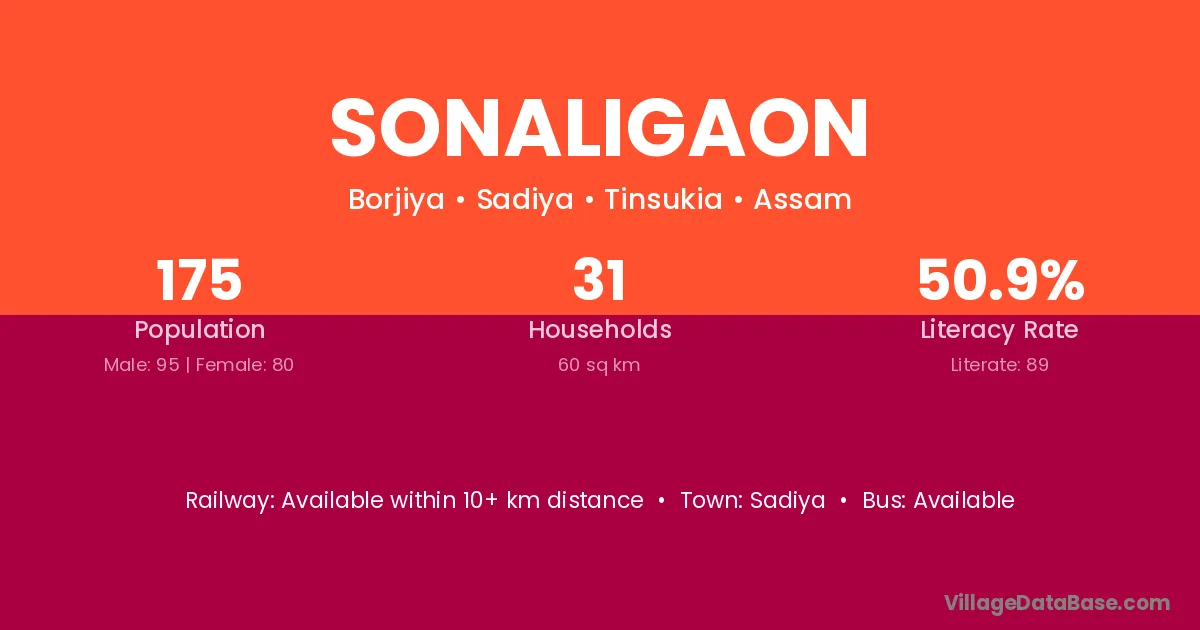 Sonaligaon village has a total population of 175 people, of which 95 are males and 80 are females.