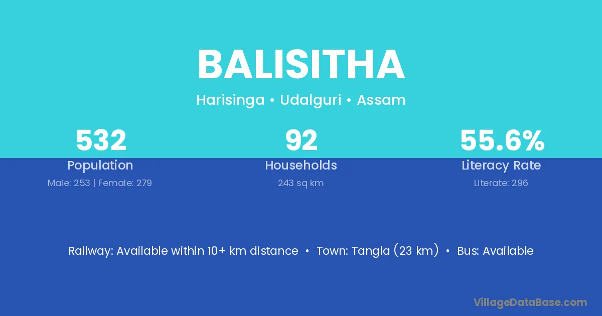 Balisitha village has a total population of 532 people, of which 253 are males and 279 are females.