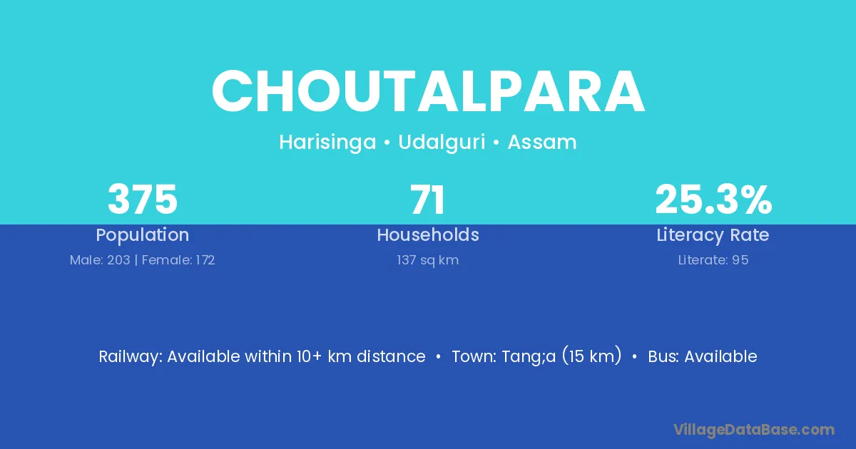 Choutalpara village has a total population of 375 people, of which 203 are males and 172 are females.