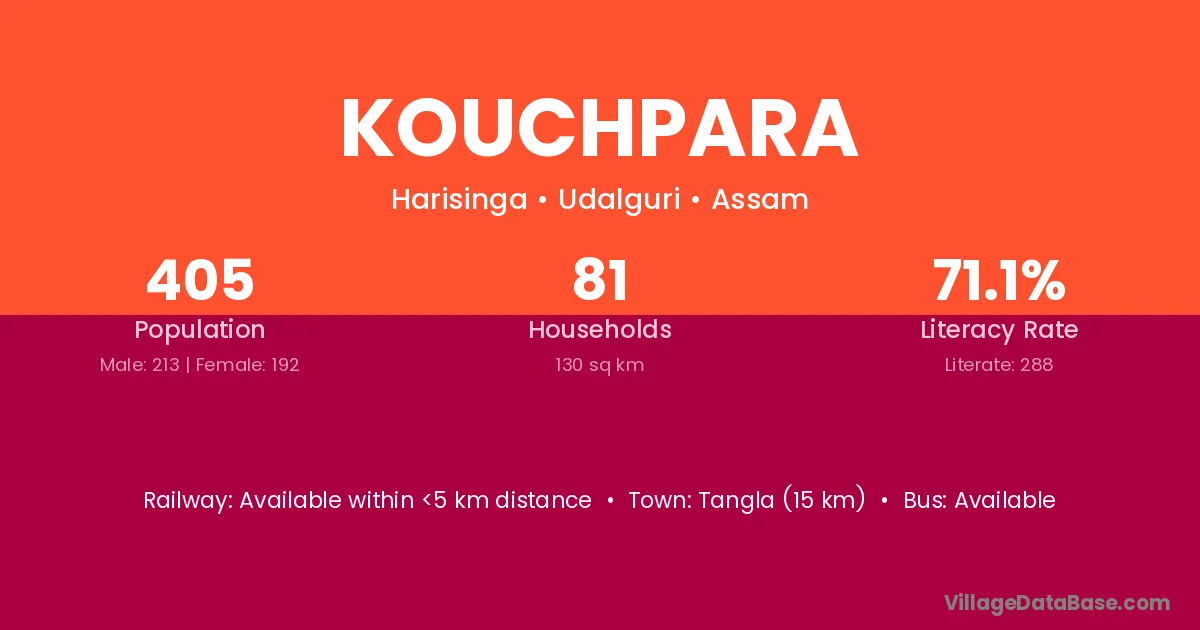 Kouchpara village has a total population of 405 people, of which 213 are males and 192 are females.