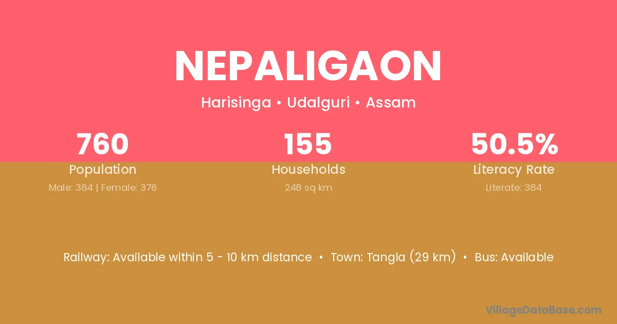 Nepaligaon village has a total population of 760 people, of which 384 are males and 376 are females.