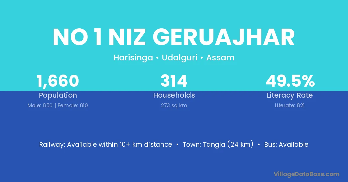 No 1 Niz Geruajhar village has a total population of 1,660 people, of which 850 are males and 810 are females.