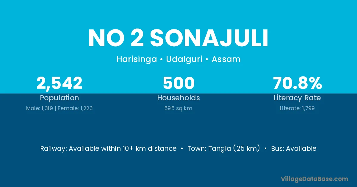 No 2 Sonajuli village has a total population of 2,542 people, of which 1,319 are males and 1,223 are females.