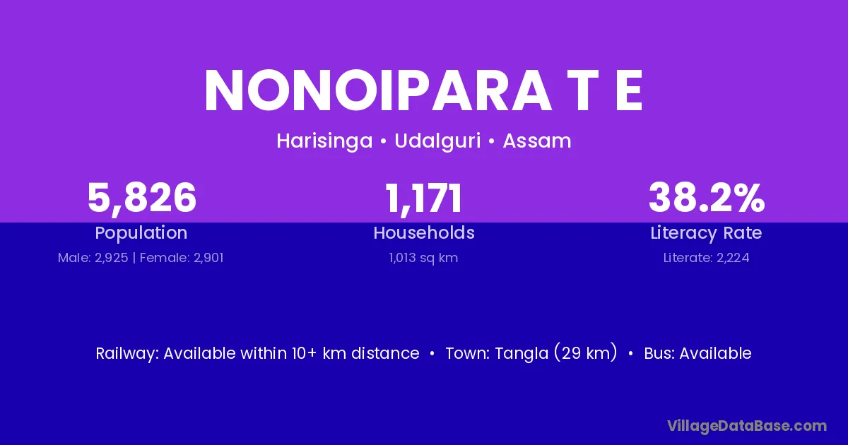 Tangla (29 km) is the nearest town to Nonoipara T E village for major economic activities and is located approximately 29 km away.