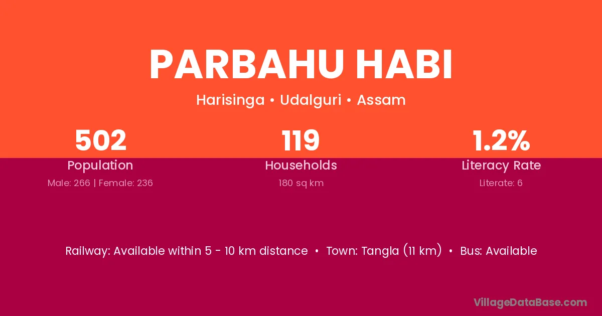 Tangla (11 km) is the nearest town to Parbahu Habi village for major economic activities and is located approximately 11 km away.