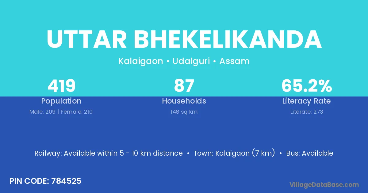 Uttar Bhekelikanda village has a total population of 419 people, of which 209 are males and 210 are females.