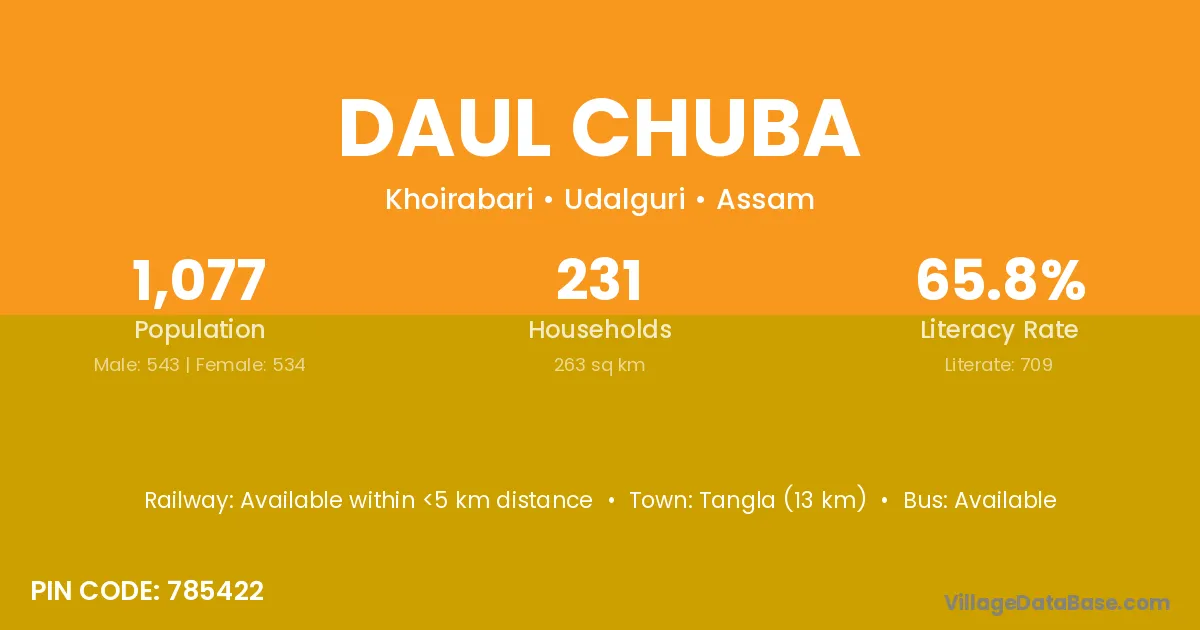 There are approximately 231 households in Daul Chuba village.