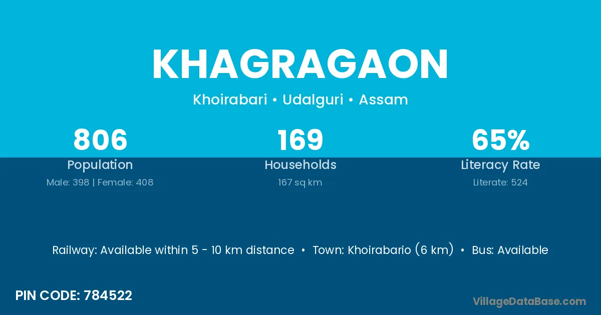 Khoirabario (6 km) is the nearest town to Khagragaon village for major economic activities and is located approximately 6 km away.