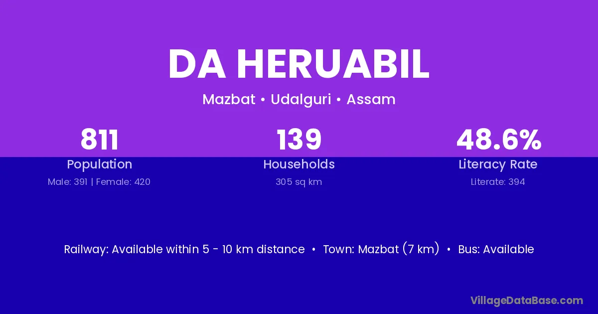 Da Heruabil village has a total population of 811 people, of which 391 are males and 420 are females.