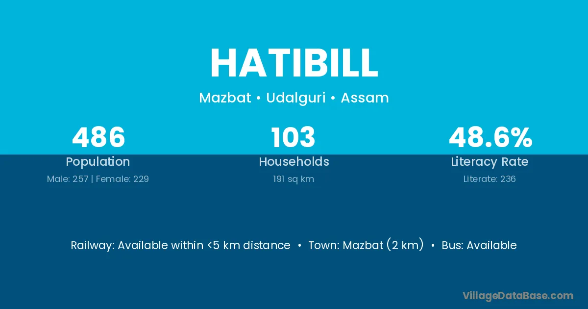 Hatibill village has a total population of 486 people, of which 257 are males and 229 are females.