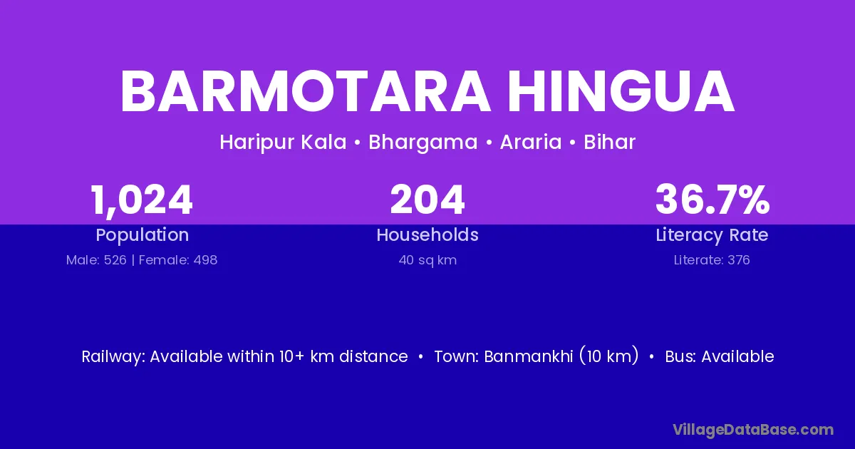 There are approximately 204 households in Barmotara Hingua village.