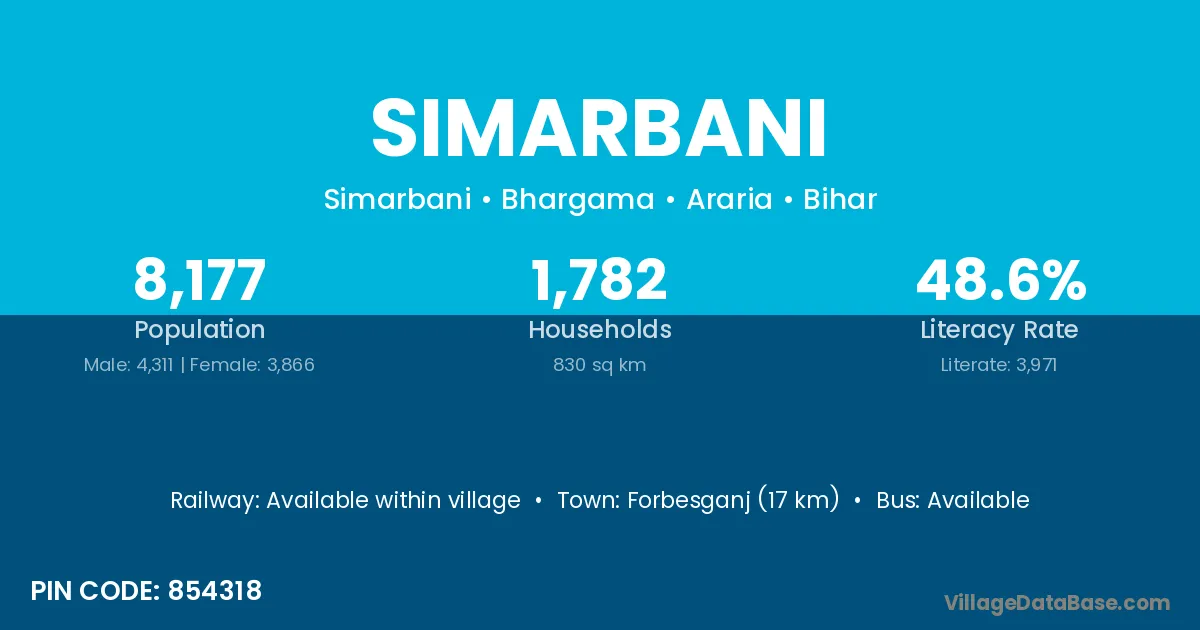 Forbesganj (17 km) is the nearest town to Simarbani village for major economic activities and is located approximately 17 km away.