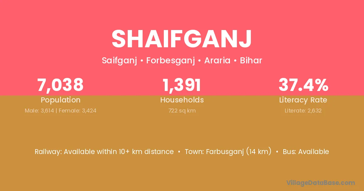 Farbusganj (14 km) is the nearest town to Shaifganj village for major economic activities and is located approximately 14 km away.