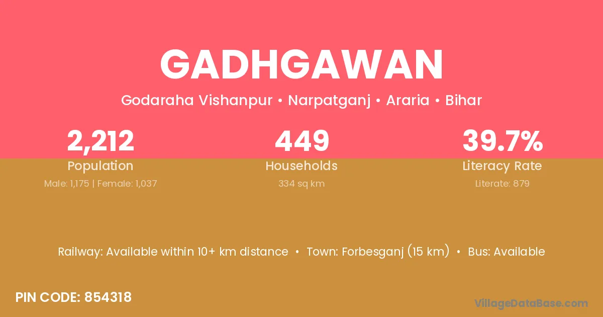Forbesganj (15 km) is the nearest town to Gadhgawan village for major economic activities and is located approximately 15 km away.