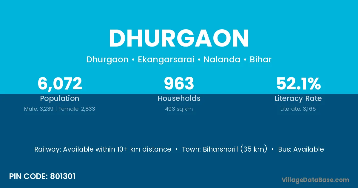 Araria (26 km) is the nearest town to Dhurgaon village for major economic activities and is located approximately 26 km away.