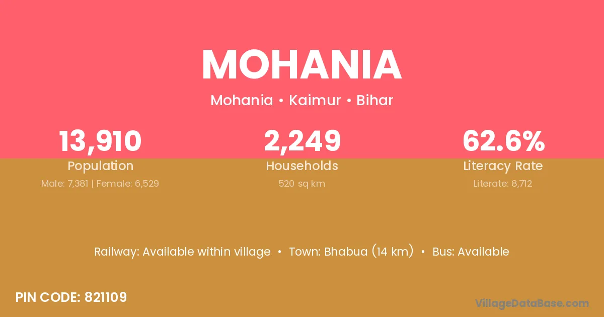 Araria (24 km) is the nearest town to Mohania village for major economic activities and is located approximately 24 km away.