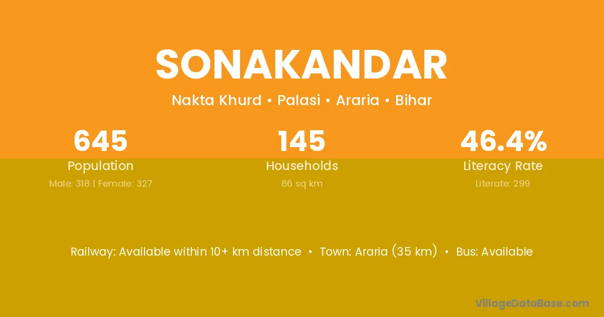 Araria (35 km) is the nearest town to Sonakandar village for major economic activities and is located approximately 35 km away.