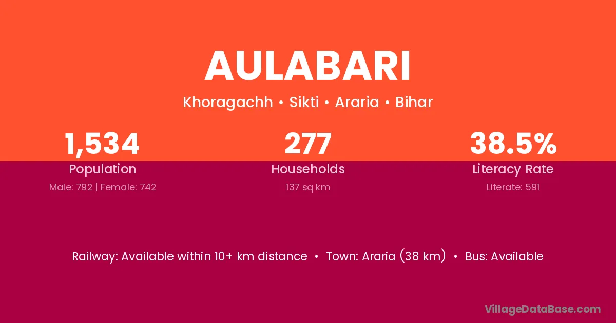 Araria (38 km) is the nearest town to Aulabari village for major economic activities and is located approximately 38 km away.
