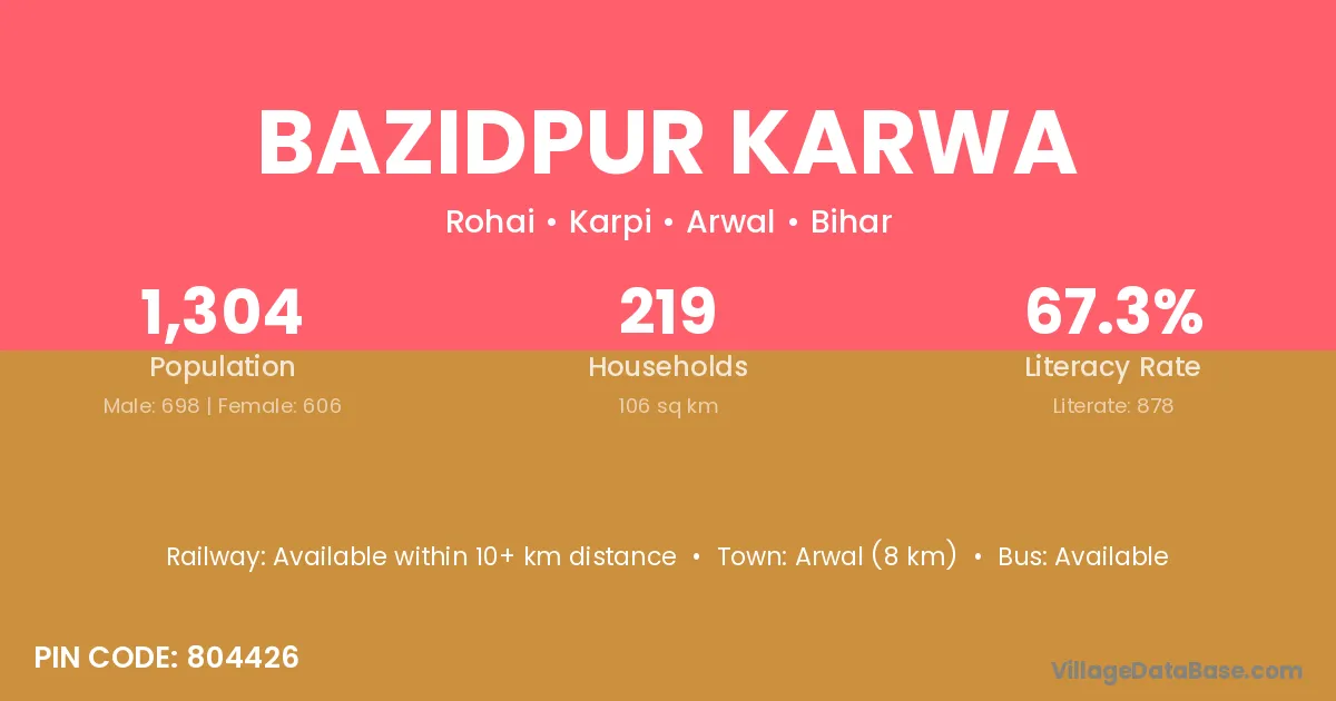 Arwal (8 km) is the nearest town to Bazidpur Karwa village for major economic activities and is located approximately 8 km away.