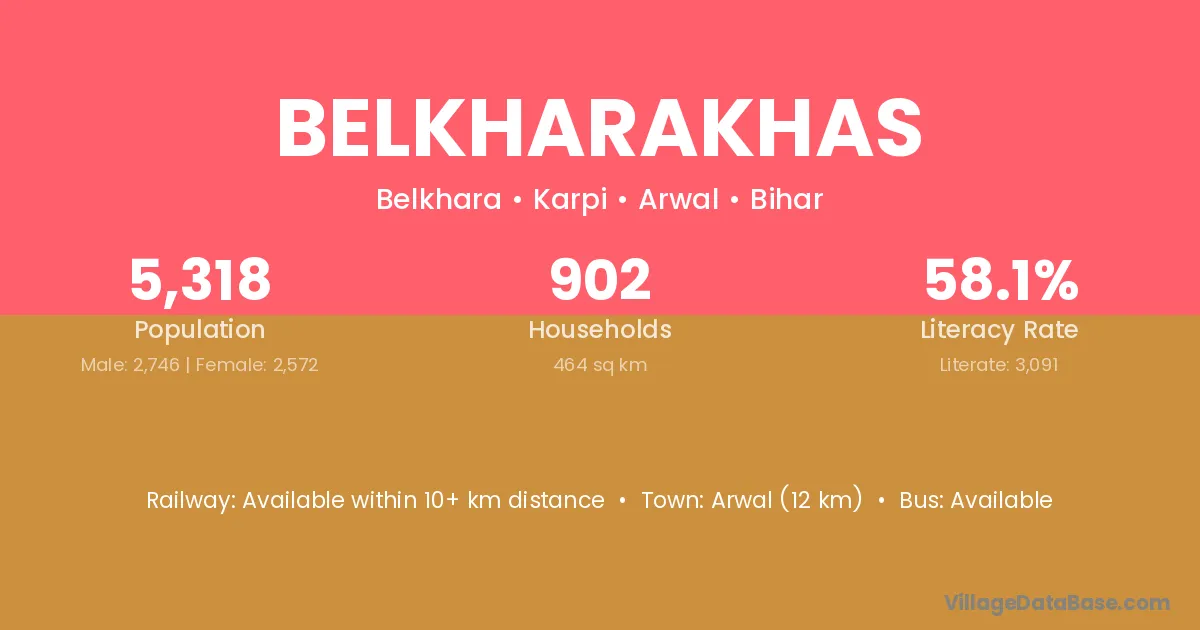 Arwal (12 km) is the nearest town to Belkharakhas village for major economic activities and is located approximately 12 km away.