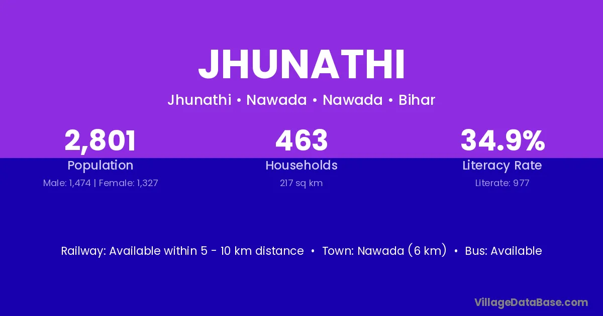Arwal (20 km) is the nearest town to Jhunathi village for major economic activities and is located approximately 20 km away.