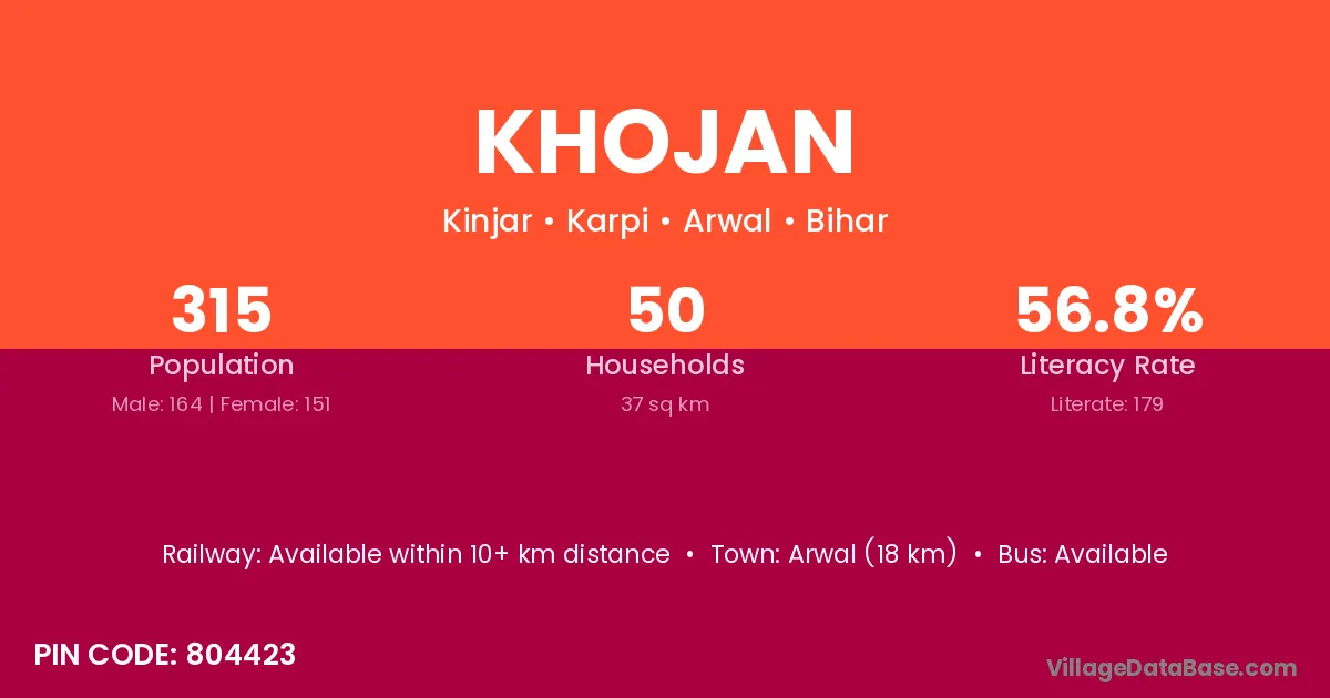 Arwal (18 km) is the nearest town to Khojan village for major economic activities and is located approximately 18 km away.