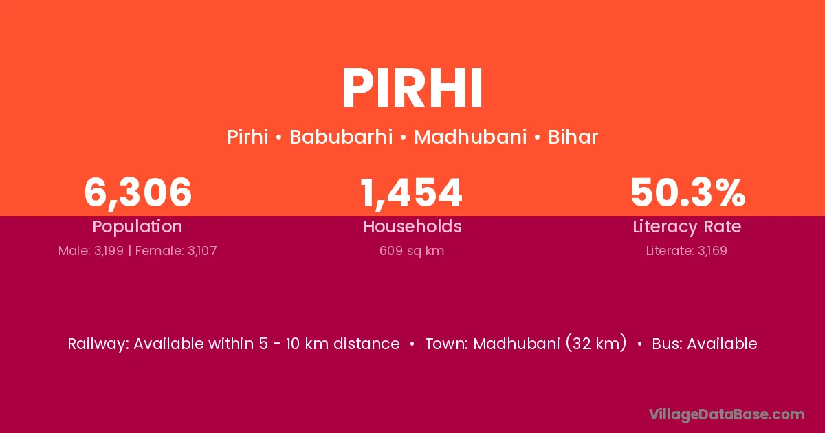 Arwal (37 km) is the nearest town to Pirhi village for major economic activities and is located approximately 37 km away.