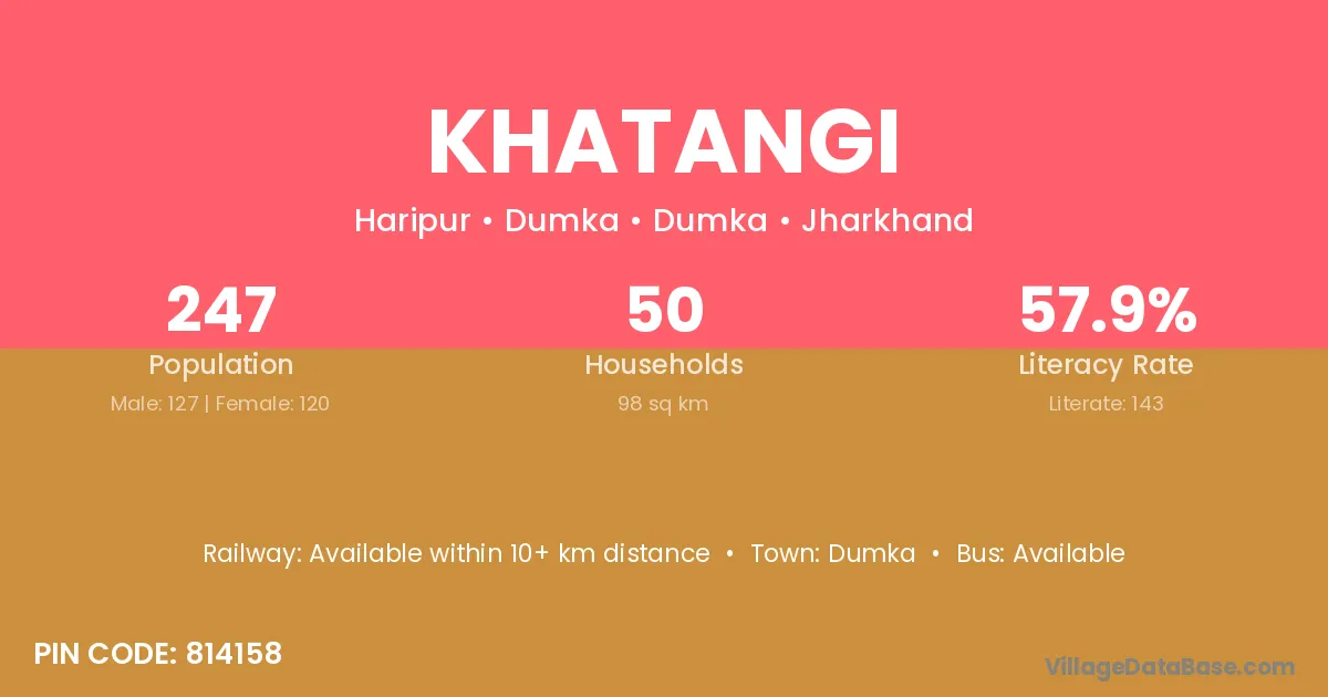 Arwal (40 km) is the nearest town to Khatangi village for major economic activities and is located approximately 40 km away.