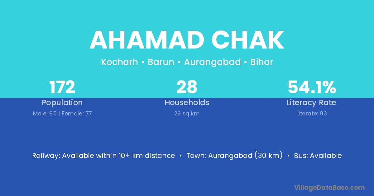 Aurangabad (30 km) is the nearest town to Ahamad Chak village for major economic activities and is located approximately 30 km away.