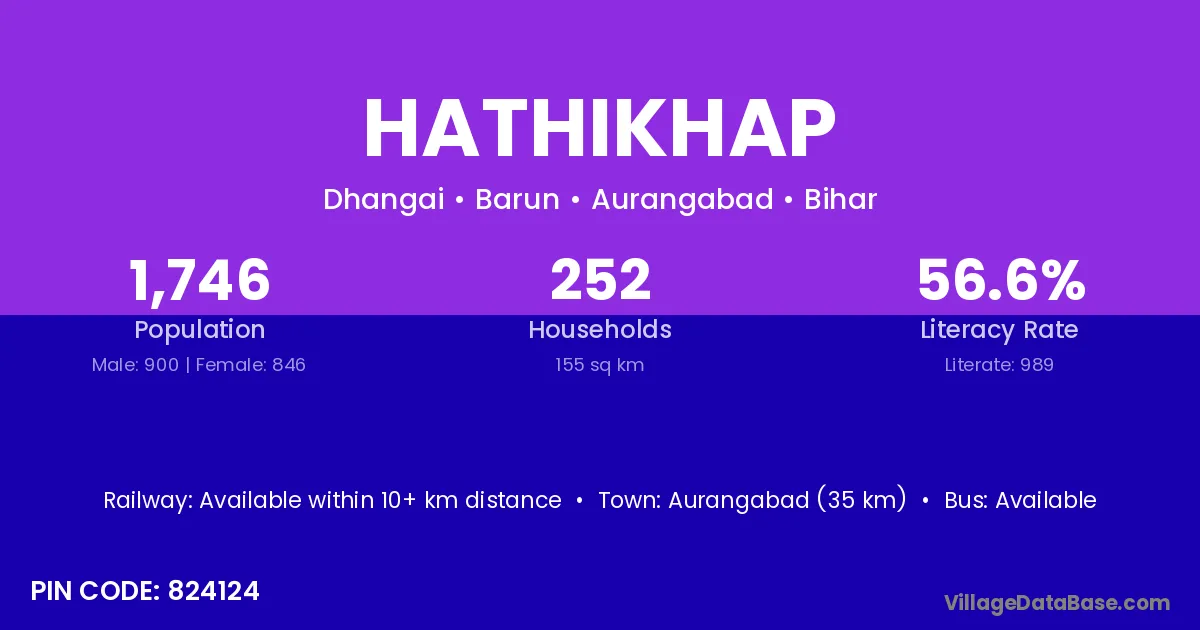 Aurangabad (35 km) is the nearest town to Hathikhap village for major economic activities and is located approximately 35 km away.