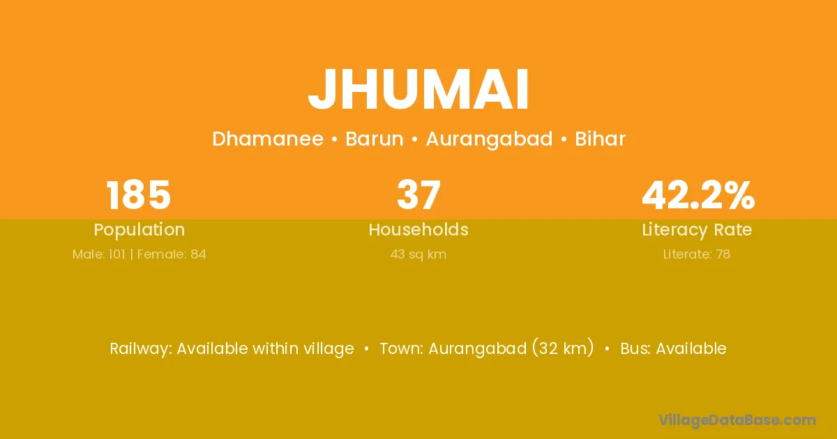 Aurangabad (32 km) is the nearest town to Jhumai village for major economic activities and is located approximately 32 km away.