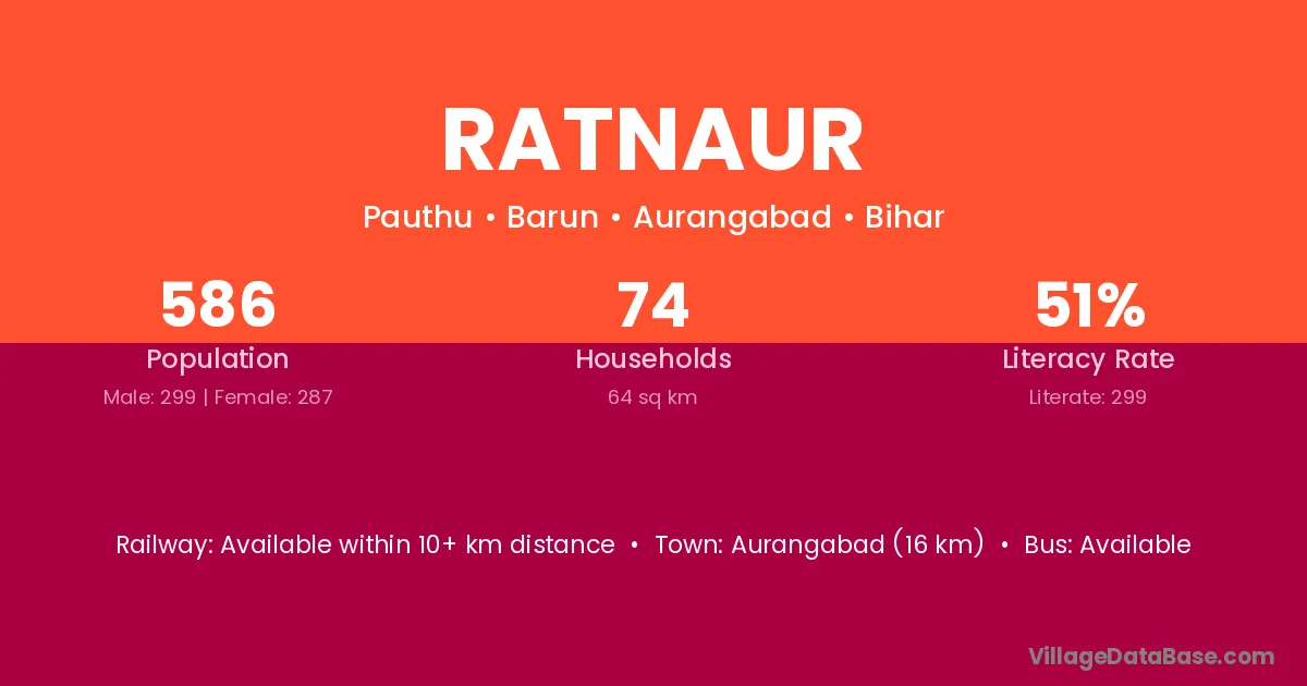 Aurangabad (16 km) is the nearest town to Ratnaur village for major economic activities and is located approximately 16 km away.
