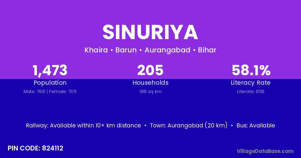 Aurangabad (20 km) is the nearest town to Sinuriya village for major economic activities and is located approximately 20 km away.