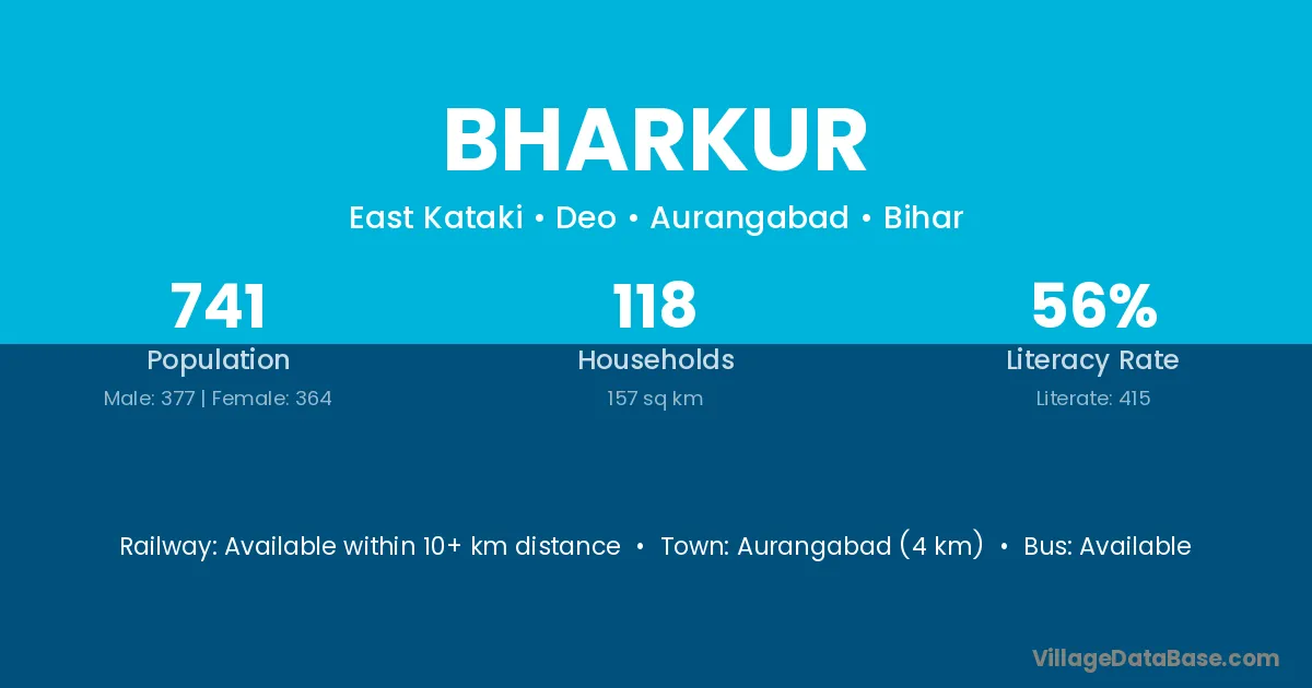 Aurangabad (4 km) is the nearest town to Bharkur village for major economic activities and is located approximately 4 km away.