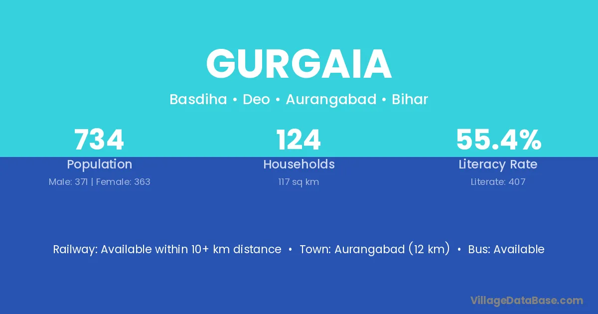 Aurangabad (12 km) is the nearest town to Gurgaia village for major economic activities and is located approximately 12 km away.